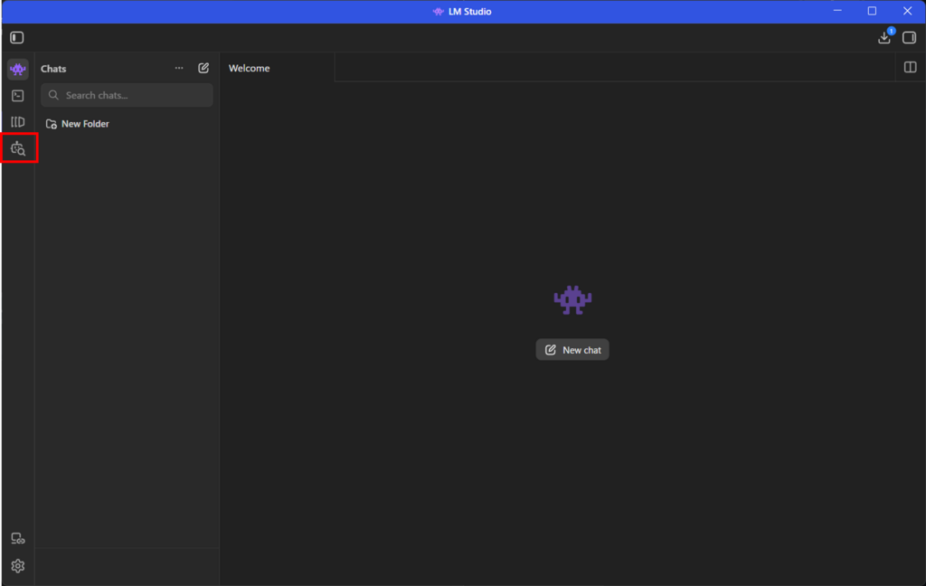 LM Studioを起動後、「Search」からモデルを検索します。左側のロボット虫眼鏡のマークです