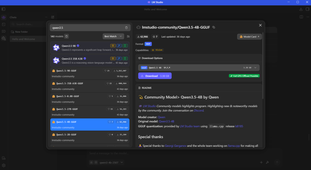 今回はQwen3.5の「Qwen3.5-4B-GGUF」にしました、