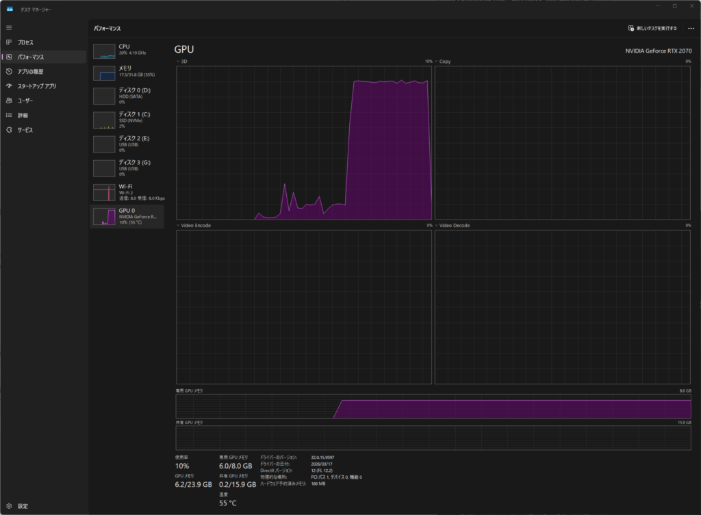 - タスクマネージャーでGPU使用率を見る