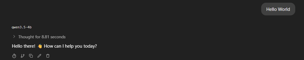 9秒考えて、Hello there! 👋 How can I help you today?と返ってきました!wえらい!w