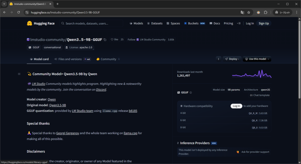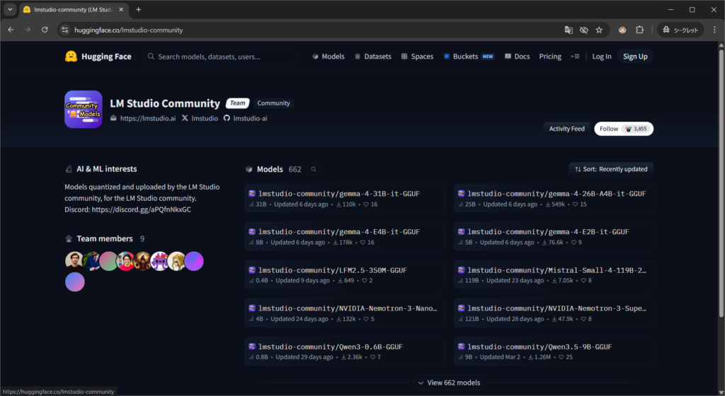 例えばLMStudioのコミュニティですね、信頼できそう、、、100パーセント信頼できるなんて言いきれない世の中~♪